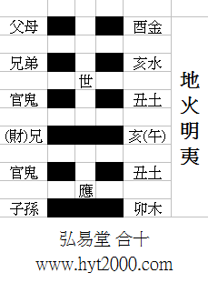 | ▌鬼谷命卦∶地火明夷(世爻属土) |