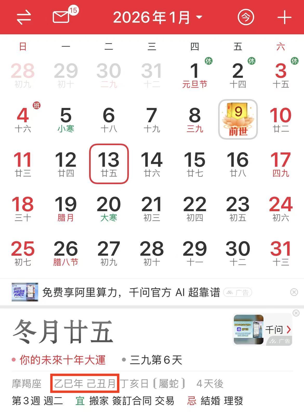 有没有发现,1月13日还是乙巳年。因为还没过立春,所以还是蛇年。