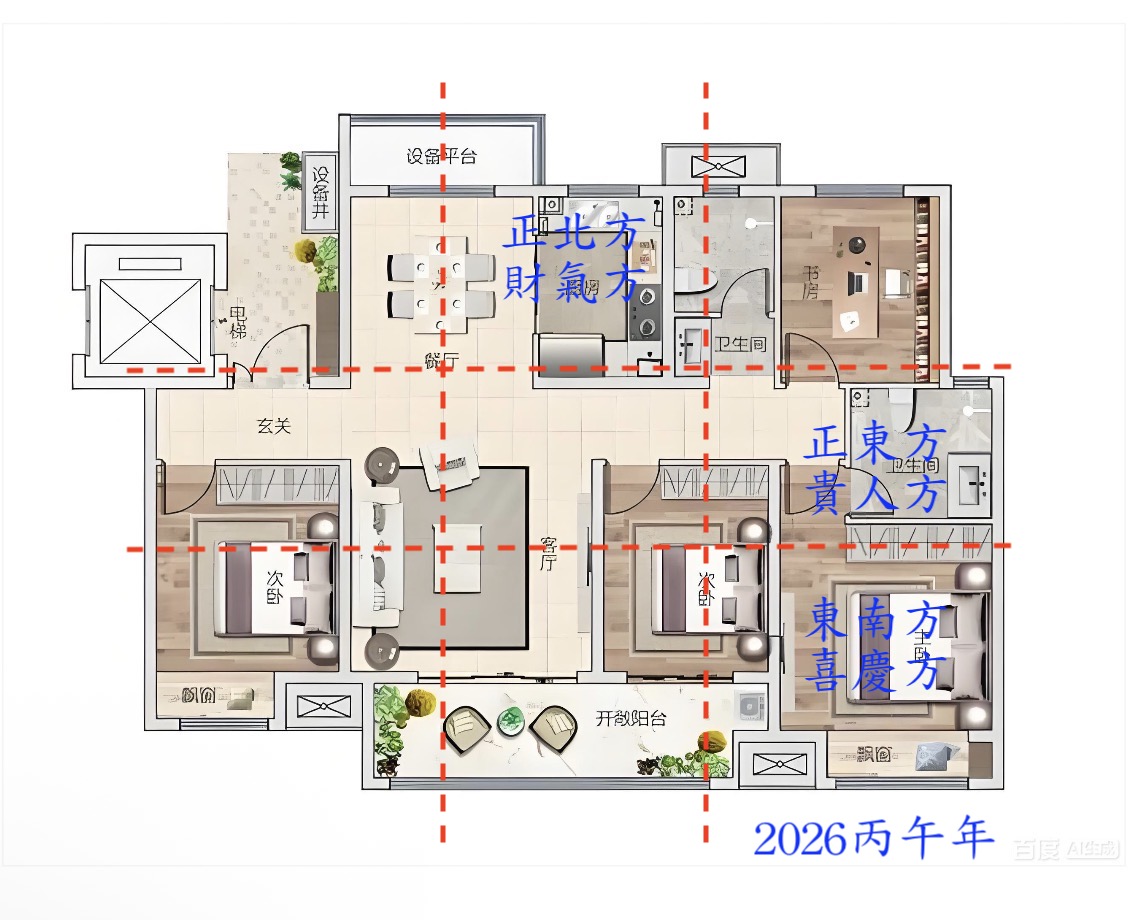 2026/2/5(四)早上7:00-9:00(或2026/2/8(日)早上11:00-13:00 )開啓丙午年旺方的門窗,同時打開抽油煙機、燃氣灶,煮個水或煲個湯15分鐘左右。配合良辰吉時捲動家裡磁場,將不好的穢氣從家裡逼出去,把新一年財氣、貴氣、喜氣引入家中!
